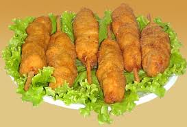 Coloque os pedacinhos de frango em uma tigela e tempere com os ingredientes acima. Depois de 30 minutos começe a fazer os espetinhos. Pega-se um palito, espeta-se um pedacinho de frango enrolado na tira de bacon. Quando estiver tudo pronto passe em um ovo batido com um pouco de água e em seguida na farinha de rosca. Frite em óleo quente, repouse em toalha de papel e sirva.