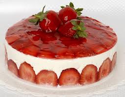 Espalhe a cobertura quando a mousse estiver firme e depois de desenformar a torta. Enfeite com morangos.
